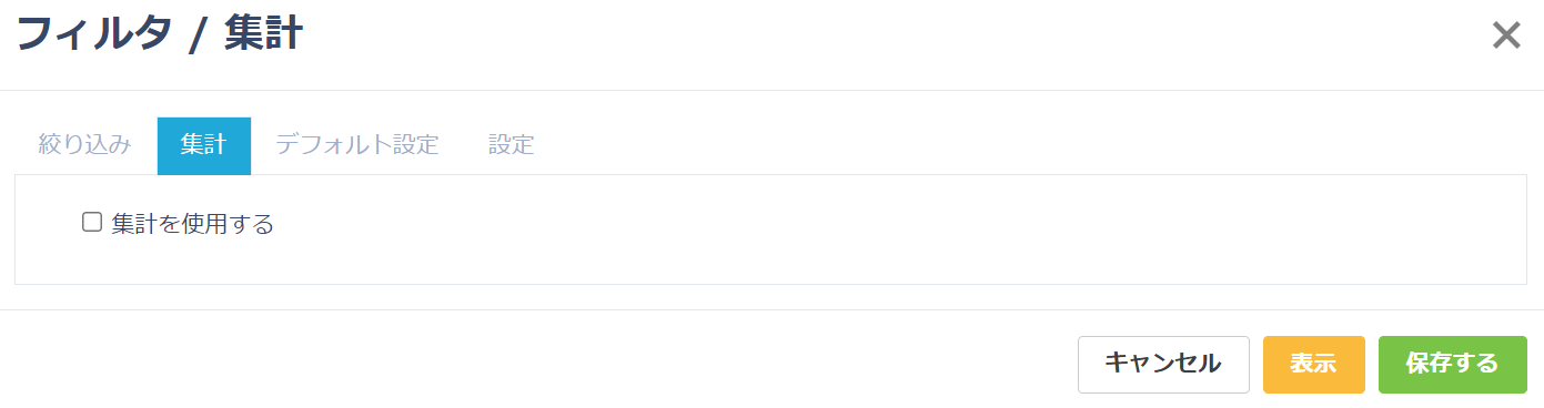 フィルタ/集計設定では、設定した条件に合致したレコードのみ表示する「絞り込み」の設定が可能です。ここでご紹介するのは、データの項目(金額等)を合算したりするのではなく、条件に合致したレコード表示をさせる方法についてご紹介します。
