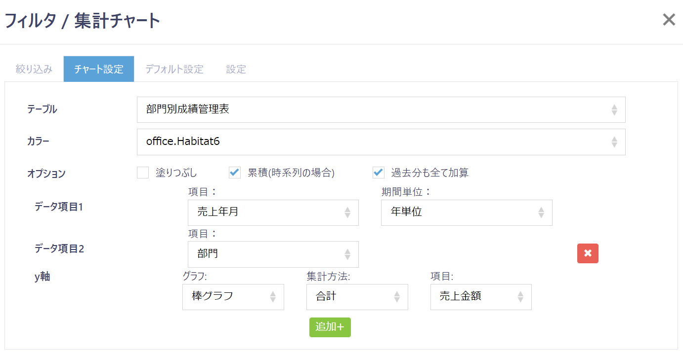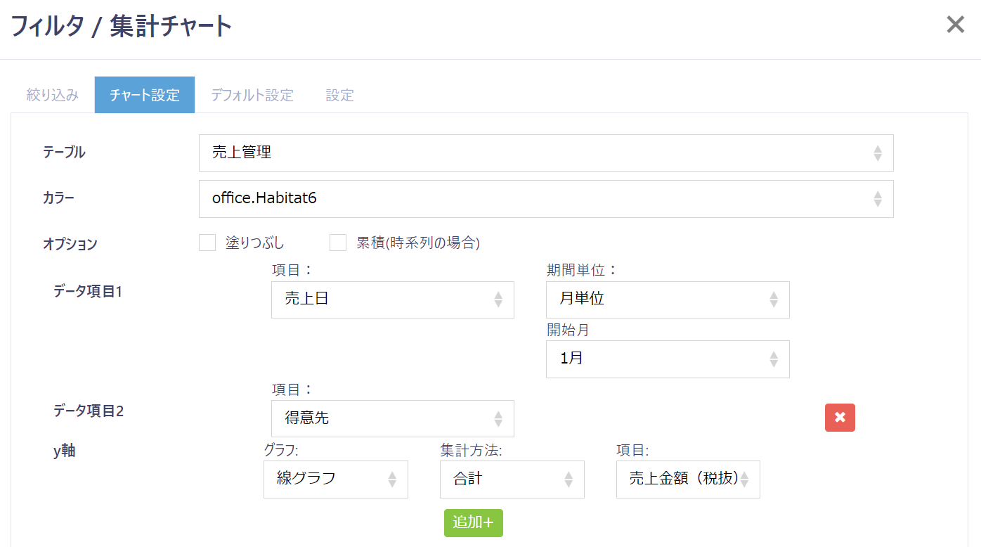 | テーブル | チャートを作成したいテーブルを選択します。 |
