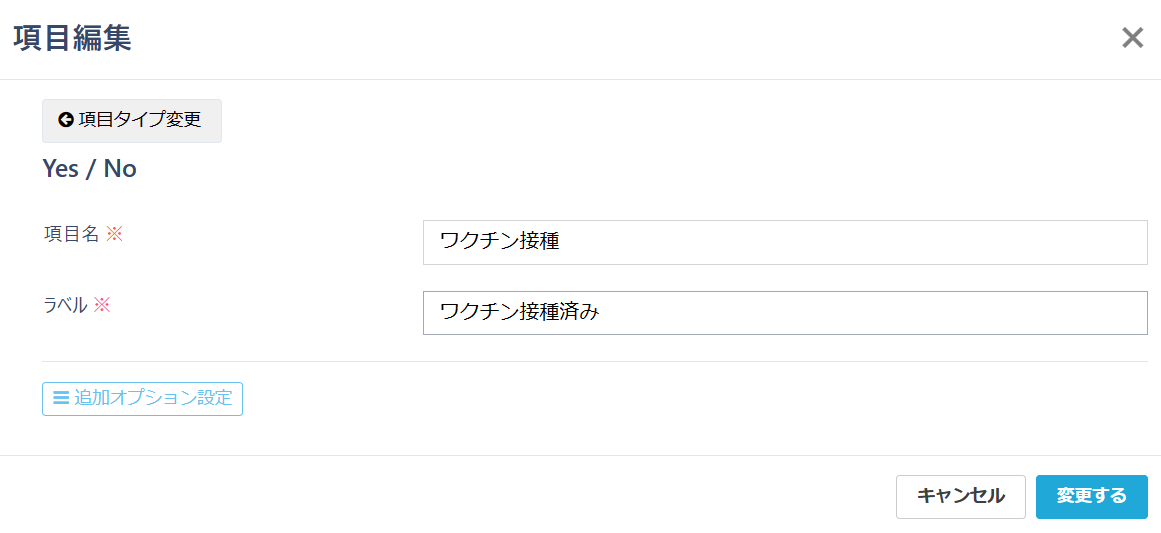 項目追加時に、「Yes/No」を選択します。