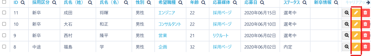編集画面をクリックし、質問に対して「Yes」の場合はチェックボックスにチェックをいれます。