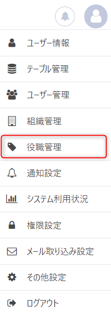 右上メニューのアイコンをクリックし、「役職管理」を選択します。
