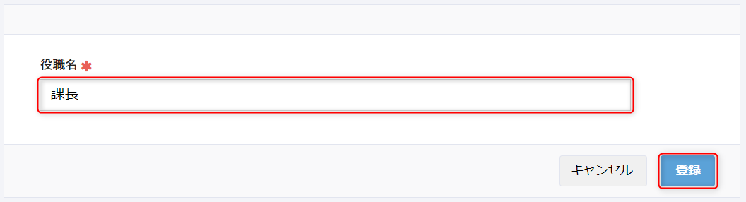 「役職名」欄に追加する役職名を入力し、「登録」ボタンをクリックします。