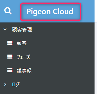 サイドメニューのロゴ部分をクリックし、トップページを表示しダッシュボードを開きます。