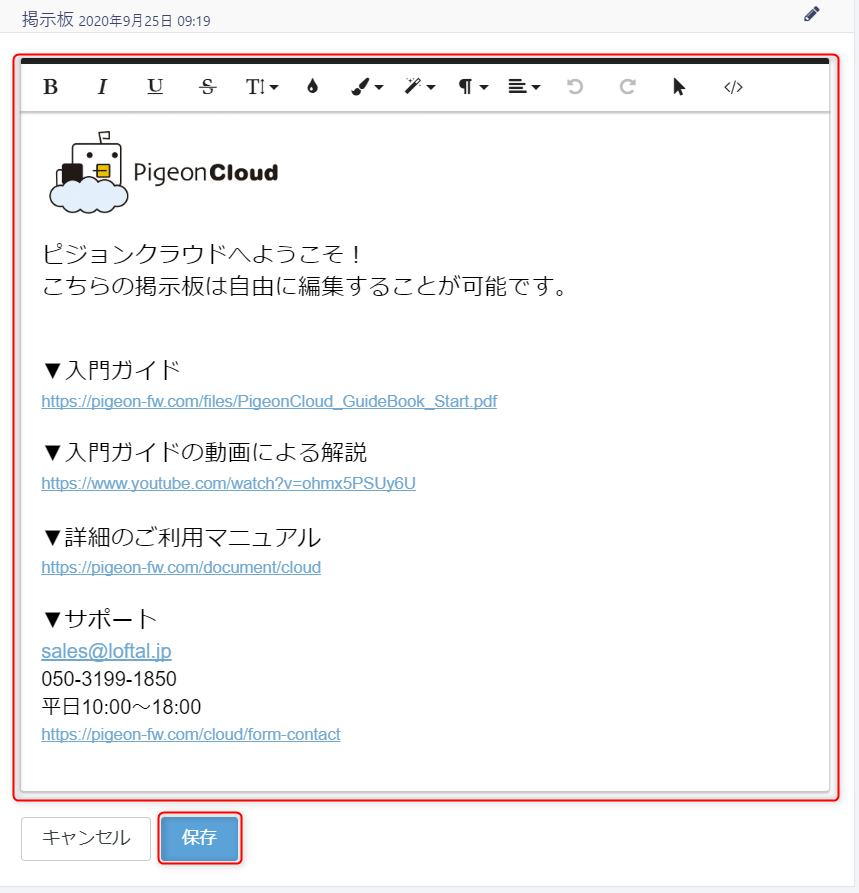 内容の編集をキャンセルする場合は、キャンセルボタンを押下します。