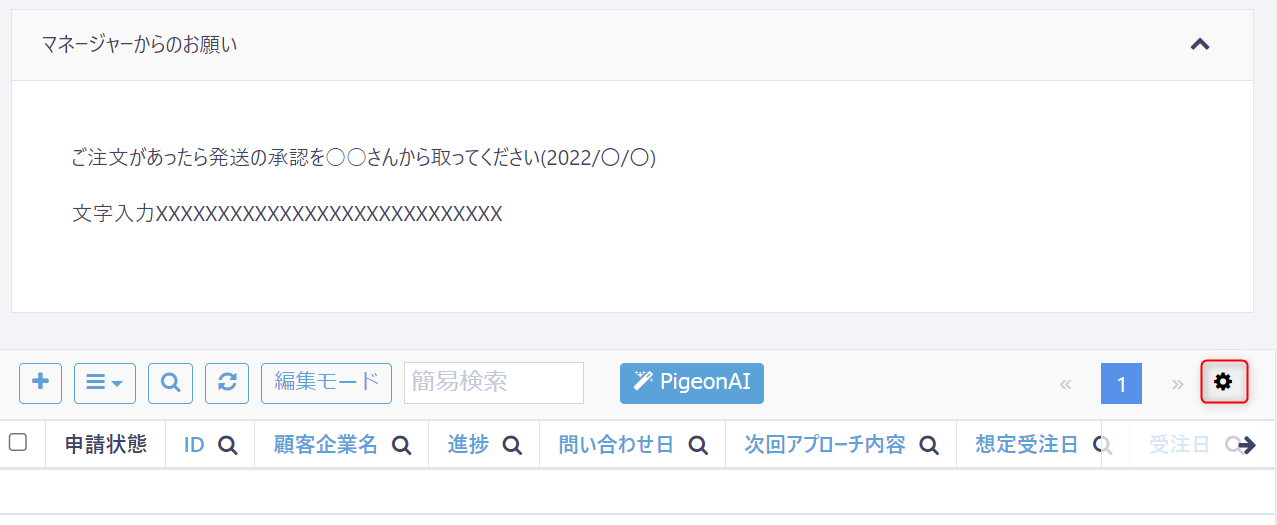 歯車のアイコンをクリックし、「テーブル設定」を選択し、テーブルの設定画面を開きます。