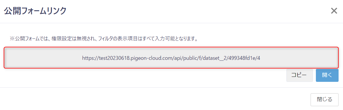 公開フォームのURLを生成することができます。