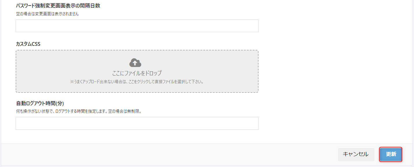 「更新」ボタンをクリックし、設定を保存します。