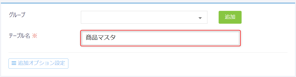 上記の手順で作成した商品マスタのテーブル設定画面を開きます。