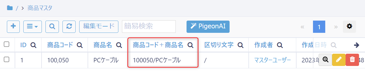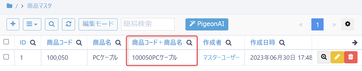 計算式:CONCAT({商品コード},{商品名})