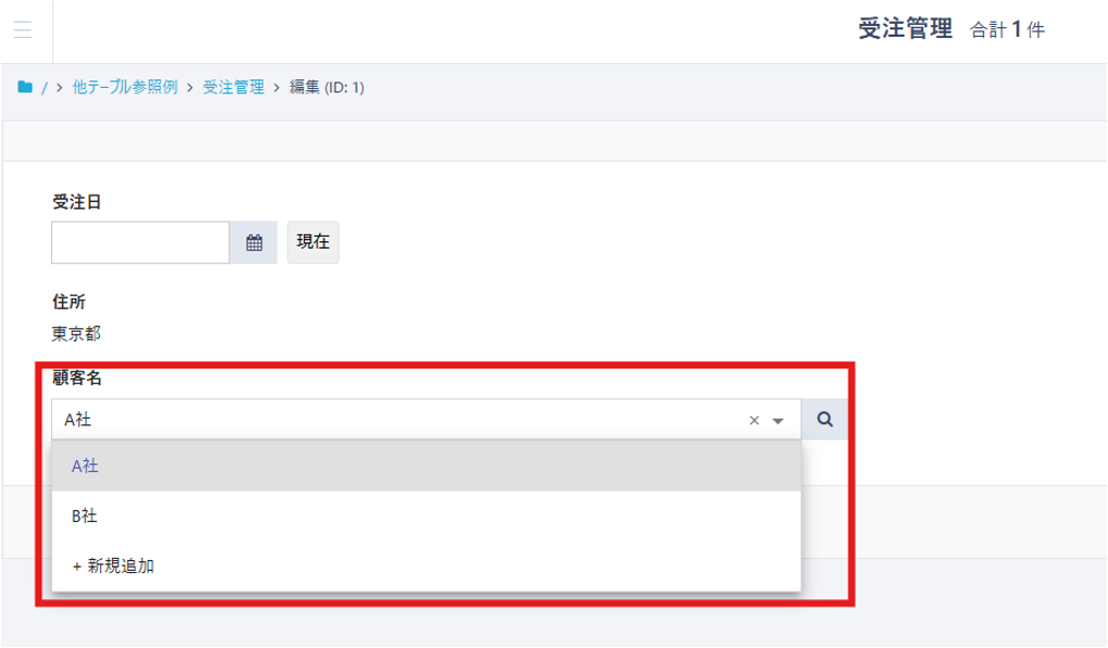 以下画面のように他テーブルを参照する方法・ルックアップ設定方法は、こちらのデモ動画からご確認いただけます。